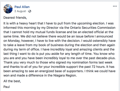 Only vote for the candidates to whom you’ve spoken. Only vote for the candidates who have answered your e-mails or Facebook messages or interacted with you on Twitter. Only vote for the candidates you like and trust and respect. Only vote for the candidates you are confident have the best interests of Niagara citizens in mind.