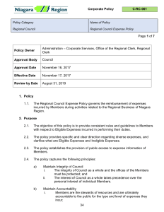 Bring a motion to have an expense policy put in place that more clearly details how councillors can spend Niagara Region money, what they can and cannot spend it on; outline how expense records shall be kept in order to be reimbursed, and implement a procedure whereby all expenses are to be approved by the Regional Clerk before they are paid out.